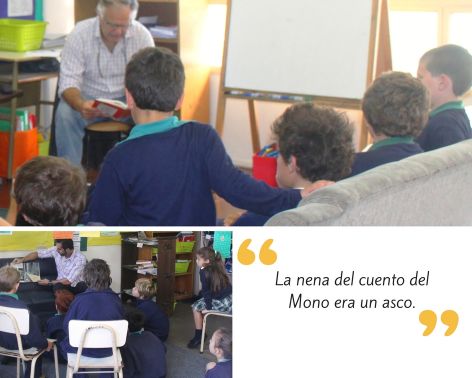El hecho que personas que los chicos ven en el colegio, pero que no son sus maestras de siempre, les vengan a leer, muestra que la lectura es importante, que compartir lecturas es fundamental para el desarrollo de habilidades y que trasciende barreras de edad, de roles y de género.